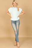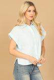 This Collared Short Sleeve Button Detail Solid Top offers effortless style and versatility. Designed with a collared neckline and short sleeves, it features a button detailing that adds a touch of elegance. Made from soft and durable fabric, it is perfect for any occasion.