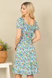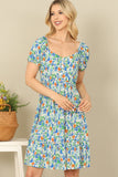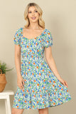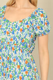 This ditsy floral dress features short puff sleeves and a cinched waist for a flattering silhouette. Perfect for any occasion, its playful pattern and comfortable fit will have you feeling confident and stylish. Embrace the season with this must-have dress.
