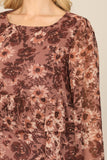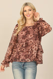 "Add a touch of elegance and femininity to your wardrobe with our Floral Long Sleeve Double Layered Peplum Top. The delicate floral print and double layered design provide a flattering and stylish look. Perfect for any occasion, this top is a must-have for any fashion-forward individual.