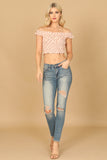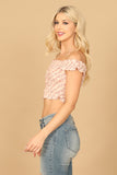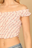 Look effortlessly chic in our Floral Off-Shoulder Ruffle Crop Top. The delicate off-shoulder design and flowy ruffle detailing add a touch of femininity. Perfect for any occasion, this top will elevate your fashion game while keeping you comfortable. Don't miss out on this must-have piece.