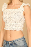 Upgrade your wardrobe with our beautiful Floral Ruffle Crop Top. Featuring a delicate floral pattern and playful ruffle details, this top is perfect for any occasion. Dress it up with a pencil skirt or keep it casual with jeans. Look effortlessly chic and feel confident in this must-have piece.