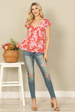 Add a touch of feminine charm to your wardrobe with our Floral Scoop Neck Ruffle Short Sleeve Top. The scoop neck and ruffle details create a flattering silhouette, while the short sleeves make it perfect for warmer weather. Made with a delicate floral print, this top will elevate any outfit.