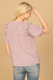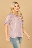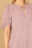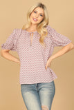 Get ready to elevate your wardrobe with our stylish Keyhole Tie Puff Sleeve Printed Top. The elegant keyhole tie and trendy puff sleeves add a touch of sophistication, while the vibrant print brings a pop of color to any outfit. Perfect for any occasion, this top is a must-have for your collection.