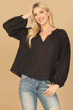 Add a touch of elegance to your wardrobe with our Long Puff Sleeve Notch Neck Lace Top. The delicate lace detail and notch neck design bring a feminine touch, while the long puff sleeves add a trendy element. Perfect for any occasion, this top is sure to make you feel confident and chic.
