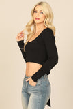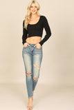 Stay cozy and fashionable with our Long Sleeve Rib Crop Top. The sleek ribbed design not only adds texture to your outfit, but also provides a comfortable, form-fitting look. Dress it up or down for any occasion and feel confident all day long.