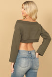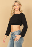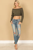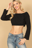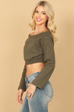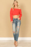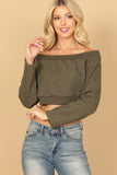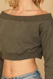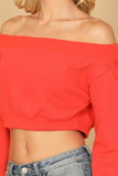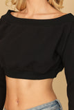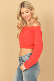 This off shoulder crop top features a stylish and versatile design with long sleeves and a solid color. Perfect for any occasion, it offers a flattering fit that will showcase your figure. Comfortable and trendy, this top will elevate any outfit.