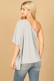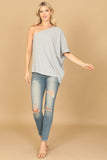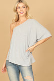Elevate your wardrobe with our ONE SHOULDER HALF SLEEVE SOLID TOP. Perfect for any occasion, the one shoulder design and half sleeve provide a unique touch to this versatile top. With its solid color, you can easily mix and match to create endless outfit options. Look stylish and effortlessly chic with this must-have top.