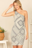 Show off your playful side in our ONE SHOULDER SIDE OPEN RUCEHD PRINTED MINI DRESS. This unique and fun dress features a ruched design and a flirty one shoulder detail. Perfect for a night out or a special occasion, this dress will have you turning heads for all the right reasons!