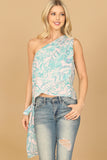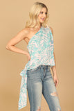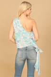 Effortlessly elevate your summer wardrobe with our One Shoulder Side Tie Printed Top. Featuring a trendy one shoulder design and a flattering side tie, this top is perfect for any occasion. The eye-catching print adds a touch of fun, while the lightweight fabric keeps you cool and comfortable. A must-have addition to your closet!