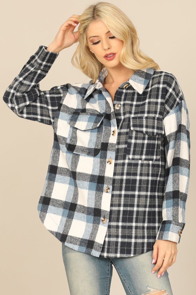 Stay stylish and warm with our Plaided Button Down Jacket. Featuring a classic plaid pattern and convenient button closure, this jacket is the perfect addition to your wardrobe. Stay comfortable and fashionable during any season with this versatile jacket.