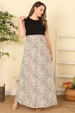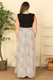 Dress up in our plus size ruffle sleeveless animal print maxi cream, perfect for any occasion. The ruffle sleeves add a touch of elegance, while the animal print gives a bold and chic look. The cream color adds a touch of sophistication to your wardrobe. Stay stylish and comfortable!