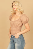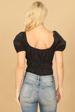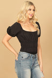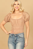 Dress up any outfit with our PUFF SLEEVE PLEATED BODYSUIT. The puffed sleeves add a touch of elegance while the pleating adds a flattering silhouette. The bodysuit style ensures a seamless and comfortable fit. A must-have for fashion-forward individuals.