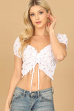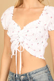 Discover the perfect balance of comfort and style with our Puff Sleeve Smocked Ruched Tie Front Floral Top. The trendy puff sleeves and smocked detailing add a touch of charm while the ruched tie front accentuates your figure. The vibrant floral design will brighten up any outfit.