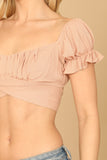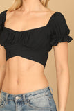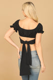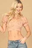 Elevate your everyday style with our Puff Sleeve Tie Back Crop Top. The puff sleeves add a playful touch while the tie back design creates a flattering fit. Perfect for any occasion, this crop top effortlessly combines fashion and comfort. Upgrade your wardrobe with this versatile piece now!