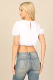 Elevate your summer wardrobe with our Puff Sleeve Tie Crop Top. Featuring trendy puff sleeves and a stylish tie front, this top adds a touch of feminine flair to any outfit. Perfect for both casual and dressy occasions, it's a versatile and must-have piece for your closet.