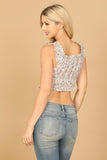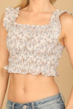 Get ready to turn heads with our stunning Ruffle Smocked Floral Crop Top! Designed with a flattering smocked waist and delicate ruffled detailing, this top will enhance your natural curves and add a touch of femininity to any outfit. Perfect for a stylish and effortless look, any day of the week.