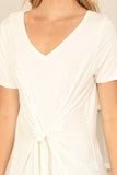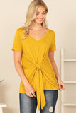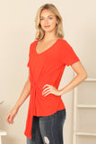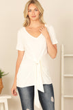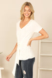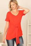 Elevate your summer wardrobe with our Short Sleeve V-Neck Twist Front Solid Top. Made with comfort in mind, this top features short sleeves, a flattering v-neckline and a stylish twist front design. Perfect for any occasion, this top will keep you cool and stylish all day long.