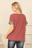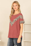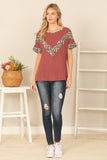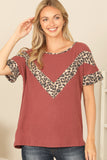 Unleash your wild side with our Sleeve Chevron Leopard Contrast Solid Top! This unique top combines a playful leopard print with chic chevron stripes, creating a bold and stylish look. The contrasting solid sleeves add a touch of sophistication. Perfect for those who embrace their quirks and stand out from the crowd.