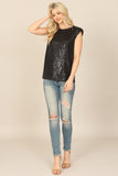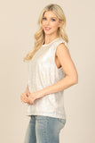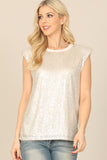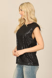 Elevate your wardrobe with our Sleeveless Sequins Top. The shimmering sequins add a touch of glamour to this versatile top, while the sleeveless design keeps you cool and comfortable. Perfect for day or night, this top effortlessly adds a touch of sparkle to any outfit.