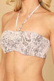 This halter bralette will elevate your style with its unique snake print and shirred design. The halter neckline provides comfortable support while the bralette style offers a flattering fit. Perfect for any occasion, this bralette will add a touch of edginess to your wardrobe.