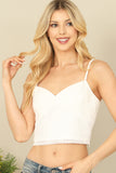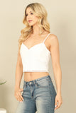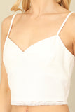 This spaghetti strap crop top features a sweetheart neckline and textured design, adding a touch of femininity to your outfit. Its solid color allows for versatile styling options, making it a staple piece in your wardrobe. Stay stylish and comfortable with this must-have top.