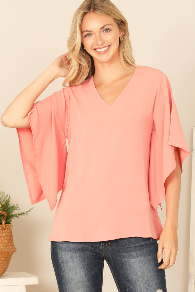 Upgrade your wardrobe with our V-Neck Butterfly Sleeve Solid Top. Designed with both style and comfort in mind, this top features a delicate v-neckline and flowy butterfly sleeves that add a touch of femininity to any outfit. Made with high-quality fabric, this top is a must-have for any fashion-forward woman.