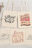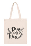 This tote bag is a stylish way to keep your faith close. With the 'Pray Wait Trust' print emblazoned on the bag, it's perfect for carrying your essentials while demonstrating your faith.
