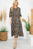 This stylish midi dress features a beautiful tiered construction and ribbon detail to elevate your look. With a comfortable 3/4 sleeve design, you'll look and feel fantastic! Perfect for any occasion.