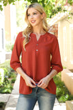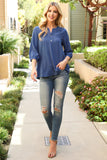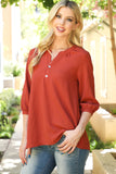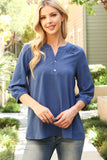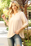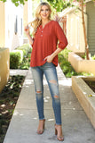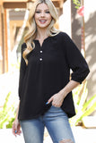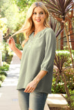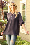 This Button Detail Collar Woven Top makes a stylish statement. Perfect for any season, this lightweight top features a beautiful button detail at the collar and offers a comfortable fit. A must-have in any stylish wardrobe.