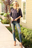 Boat Neckline Puff Sleeve Hacci Brushed Top