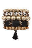 Let your fashionable self check out the scene with this one-of-a-kind set! Featuring a check pattern wood square bead, tassel pendant, charm, and versatile bracelet - you won't be able to help but stand out! Jazz up your look with this stylish fashion accessory.