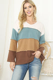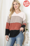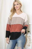 Look and feel your best in this stylish color block top! The reversed cover stitch detail adds a unique element to it, making it perfect for any occasion. You'll love how it flatters your figure!