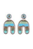 HORSE SHOE METAL BLOCK CCB DROP DANGLE EARRINGS