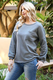Boat Neckline Puff Sleeve Hacci Brushed Top