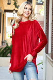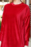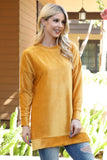 Stay warm and comfortable with this long sleeve velvet corduroy top. Featuring a side slit for added style and ease of movement, make this your go-to for relaxing days or night.