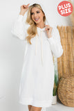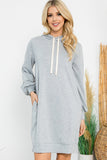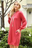 Kids Solid Long Sleeve Hoodie Dress with Drawstring