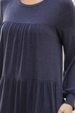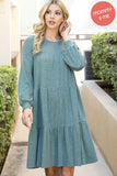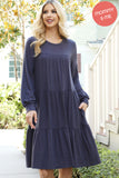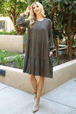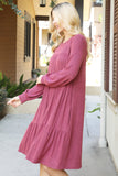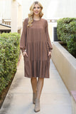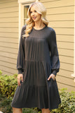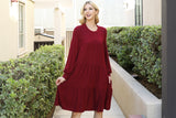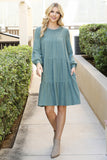 Solid Long Sleeve Shirring Tiered Detailed Dress