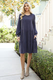 Solid V-Neck Long Sleeve Dolphin Hem Dress