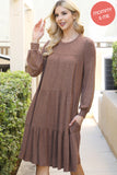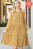 This Puff Long Sleeve Tiered Hacci Brushed Dress is the perfect choice for effortless style. Its stylish tiers and puff long sleeves make it a must-have for luxury comfort. You’ll feel refreshed and stylish all-day long!