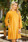Make a statement in the stylish Puff Long Sleeve Velvet Corduroy Dress. Its velvet corduroy fabric is ultra soft to the touch and provides a smart and fashionable look. The puff long sleeves are the perfect finishing touch for this eye-catching outfit.