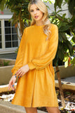 Solid Long Sleeve Ribbon Elastic Waist Dress