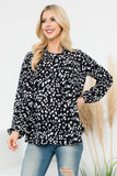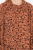 Make a statement in this ultra-chic top. Featuring a playful animal print woven fabric, it's designed with puff sleeves, a merrow neckline, and is the perfect piece for any occasion.