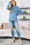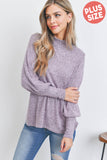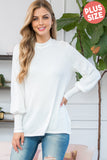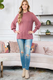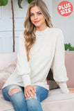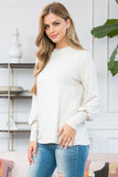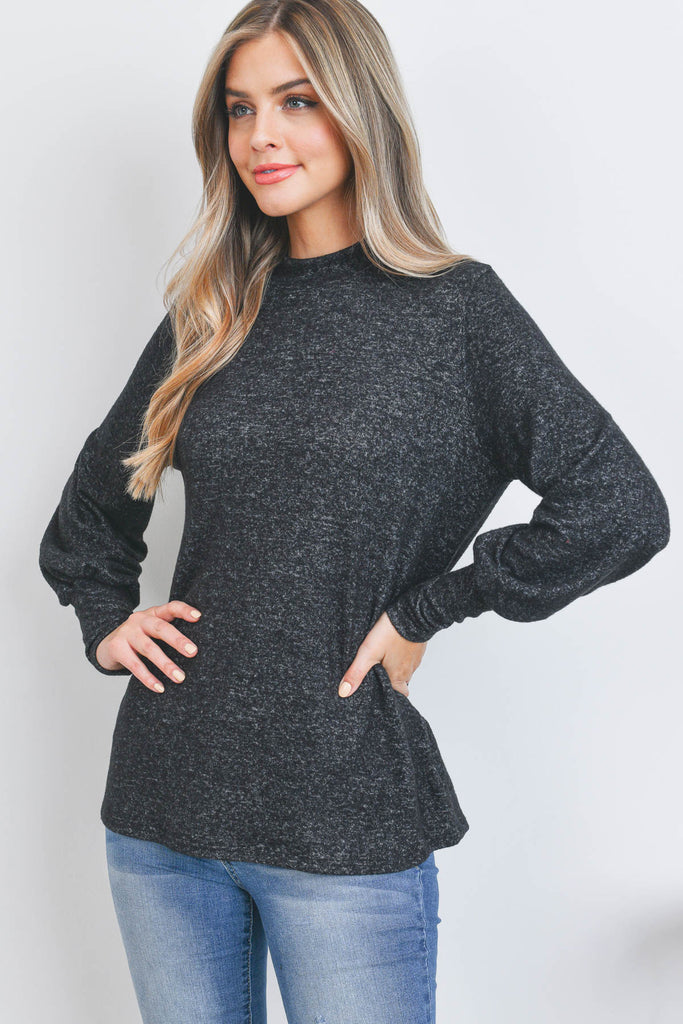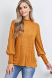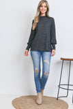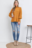 Boat Neckline Puff Sleeve Hacci Brushed Top