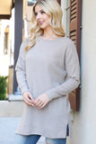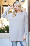 Put your best foot forward in this stylish side slit round neck sweater. Perfect for fall or spring, this comfortable long sleeve top adds a smart look to any outfit.