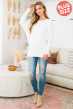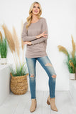 Boat Neckline Puff Sleeve Hacci Brushed Top