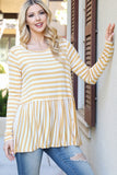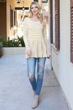Bell Sleeve Ribbon Detail Stripe Round Hem Top