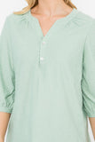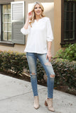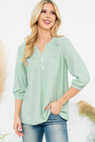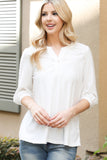 Upgrade your wardrobe with our Swiss Dot Quarter Sleeve Notch Neckline top. The classic Swiss Dot design adds a touch of elegance to any look, while the quarter sleeves and notch neckline provide comfort and versatility. Perfect for any occasion, this top will elevate your style effortlessly.