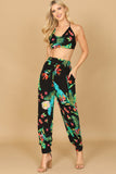 Upgrade your summer wardrobe with our COWL NECK SPAGHETTI STRAP TROPICAL CROP TOP & PANTS SET. Stay stylish and comfortable in this chic set, featuring a trendy cowl neck and spaghetti straps, paired with a vibrant tropical print. Perfect for a day at the beach or a night out with friends.