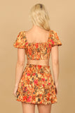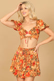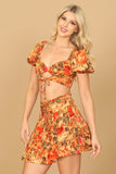 Elevate your style with our FLORAL PAINTERLY PUFF SLEEVE FRONT CUT-OUT CROP TOP RUFFLE SKIRT. This chic set features a playful cut-out design and trendy puff sleeves. The vibrant floral print and ruffle skirt will add a touch of femininity to any look. Embrace a confident and effortless look with this versatile ensemble.