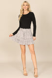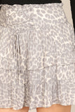 Elevate your wardrobe with our Leopard Criss Cross Tie Ruffle Skirt. The ruffle detailing and criss cross tie add a touch of femininity to this fierce leopard print skirt. Perfect for the trendsetter who wants to make a statement.